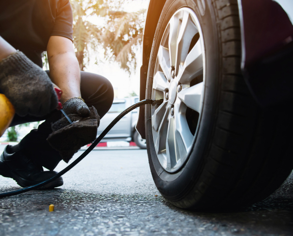 Changement de pneu : pour l'installation de votre pneu de secours. Attention : assurez-vous d'avoir une roue de secours.